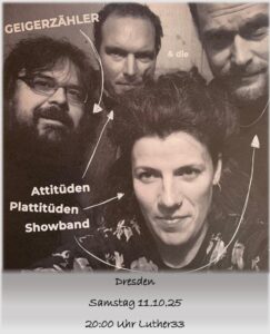 Ich hab ja schon ziemlich oft in der Luther 33 gespielt. Ich tue das gern, weil ich den klein Ex-Besetzerkeller in der Neustadt sehr schätze z.B., weil die Leute dort angenehm und zugetan sind. Diesmal jedoch ist es etwas Besonderes, weil die tolle Band, die mit mir das Jubiläumsalbum aufgenommen hat, zum ersten Mal mit mir zusammen auswärts spielt.