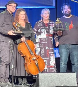 Neben mir die Moderatorin Petra Schwarz und die Publikumspreisgewinner Traumvagabunden.